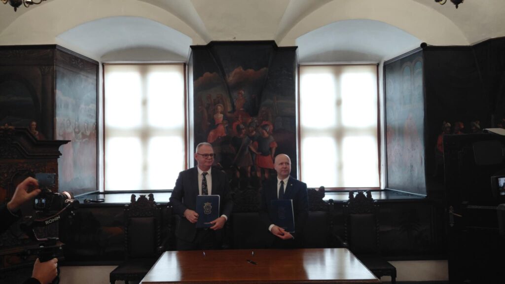 12 marca 2026 roku w pięknej sali sądowej Muzeum Ziemi Chełmińskiej, odbyło się uroczyste podpisanie umowy na realizację projektu „Regionalny Klaster Usług Społecznych i Zdrowotnych w Chełmnie – etap I.” Umowę, w obecności Marszałka Województwa Kujawsko – Pomorskiego Piotra Całbeckiego i zaproszonych gości, podpisał Burmistrz Miasta Chełmna Mariusz Kędzierski oraz dyrektor Przedsiębiorstwa Wielobranżowego „LECH” Sp. z o.o. w Bydgoszczy.